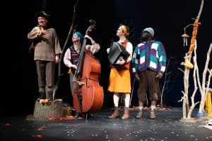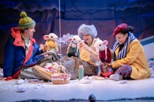 The Snow Mouse returns, leading three children on a magical winter adventure with live music and puppetry!