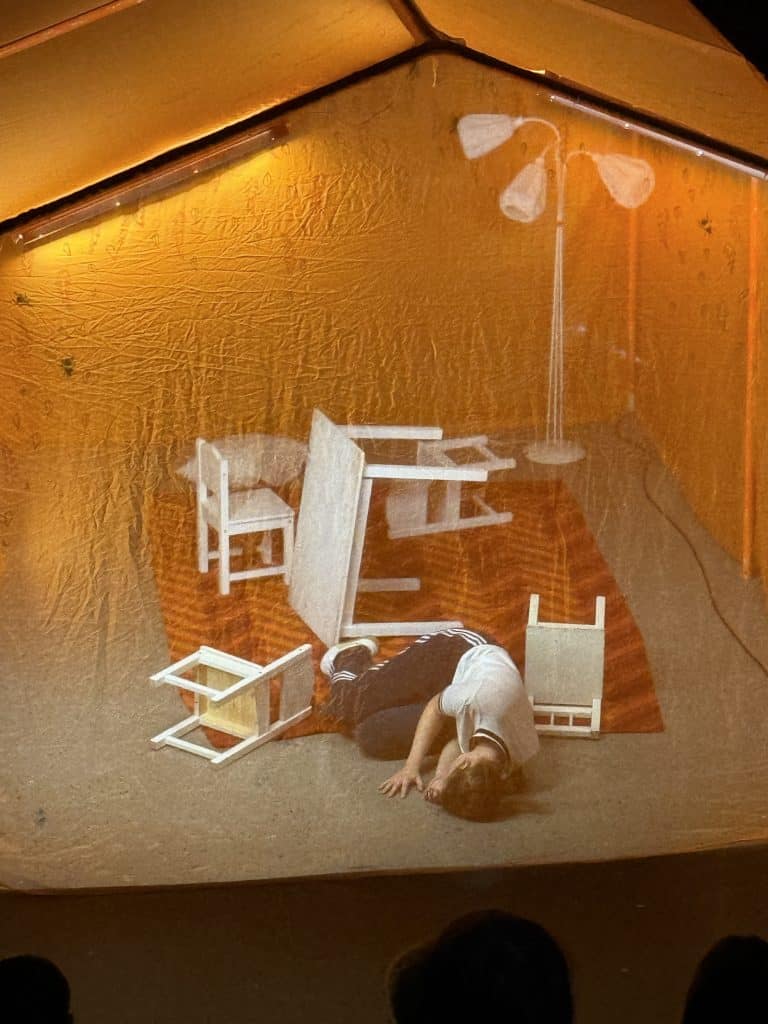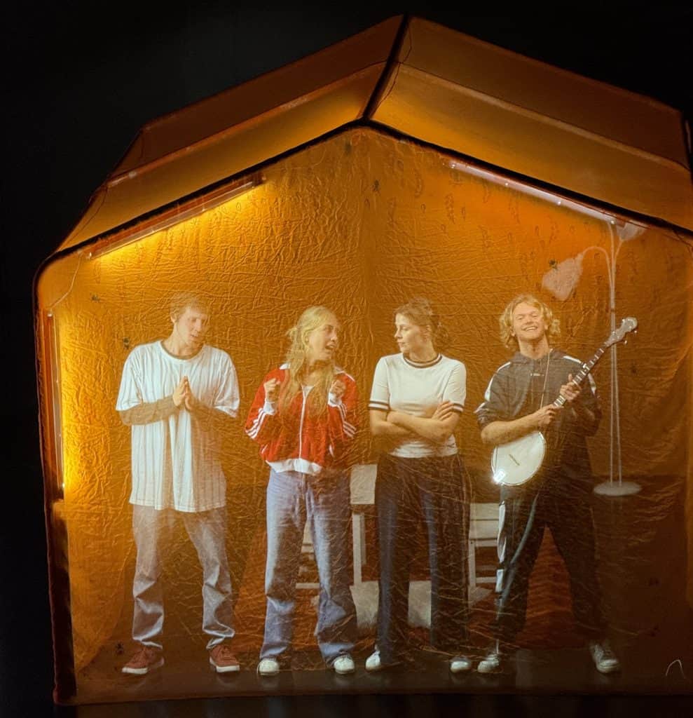 The performance is made for ages 14+ and is devised from documentary material from young people that have experienced mental health issues or have supported friends and family that have. NIE always device performances based on real stories from real people. The signature of a NIE performance is a total theatre experience, where the overall expression have elements of visual theatre, songs, music, clown and storytelling.