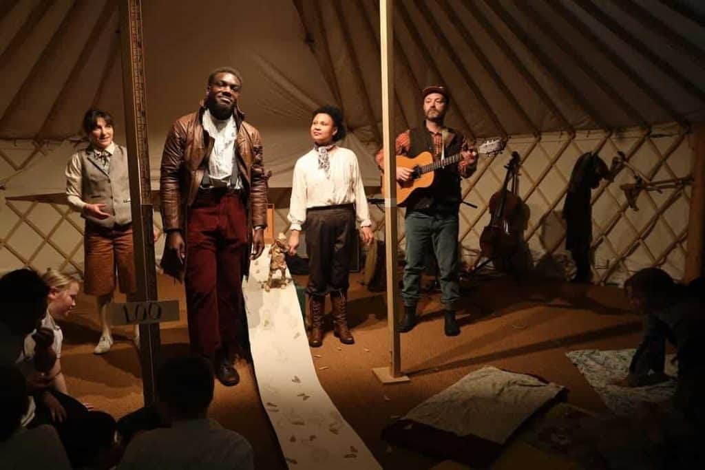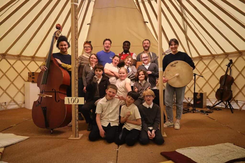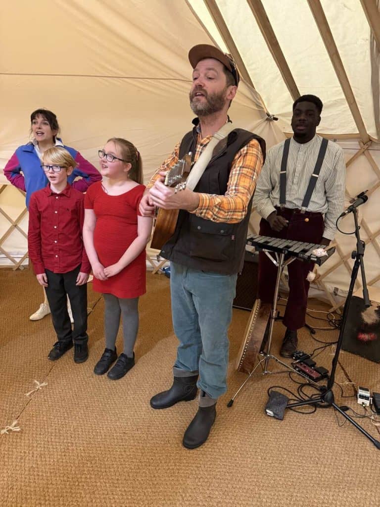 Our team of professional actor musicians then took the stories into the rehearsal room and created a live show, weaving together the themes from the workshops, and bringing the children’s new legends to life.