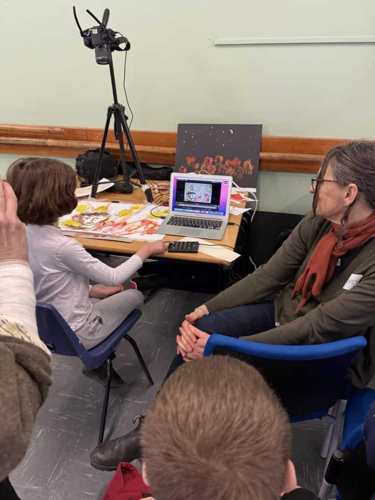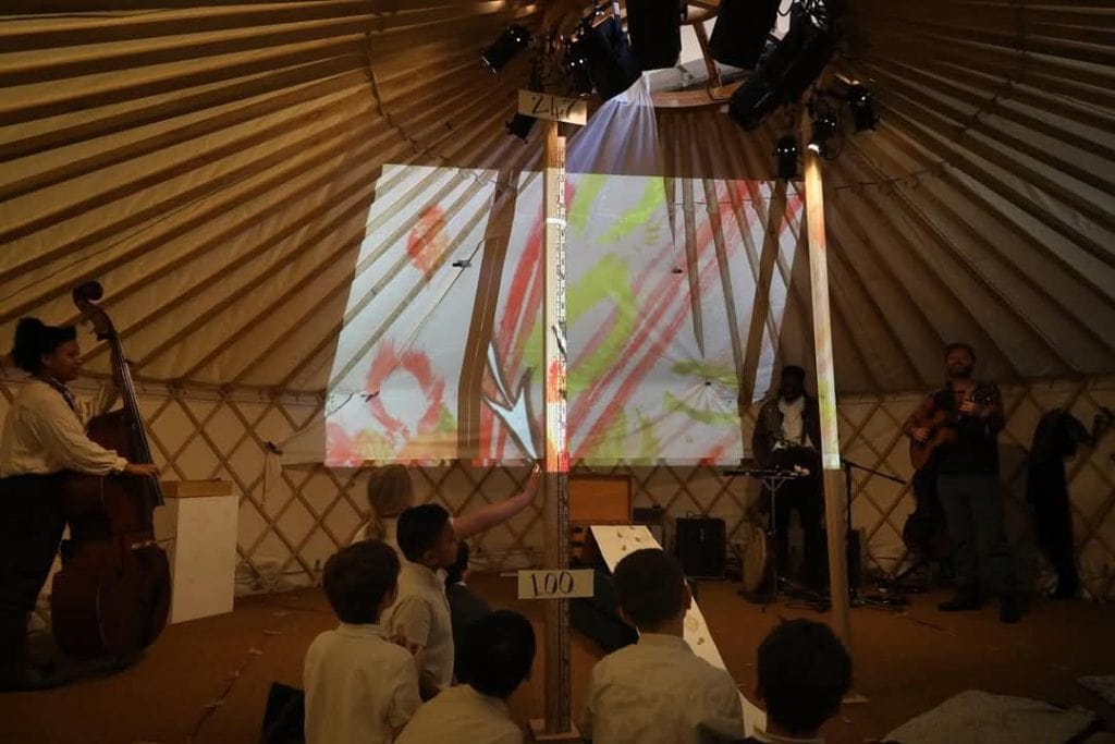 We worked the live action together with a fantastic animation of the stories, created by the children along with Oscar-nominated animator Lizzy Hobbs. This was the first time we had been able to include a filmed element of children’s work within the performance.