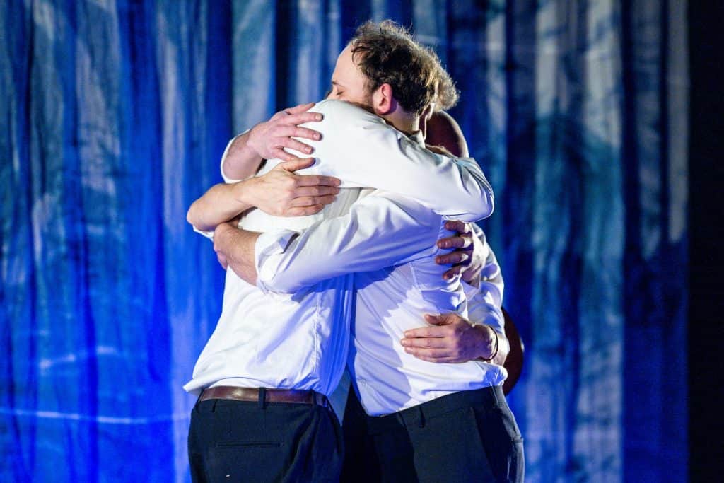 This is a production with lots of hot hugs and some cold showers.