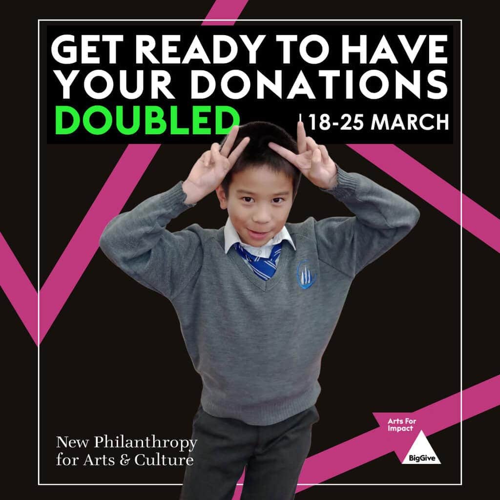 We are delighted to have been selected by the Big Give to take part in their 2025 ‘Arts for Impact’ campaign running between the 18th and 25th March 2025. During this dedicated week any donation received will have double the impact on our our creative learning work in the UK, and the cultural opportunities available to young people
